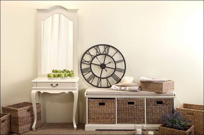 שידת כניסה (עם מראה), סדרת טוסקנה 64x39x182 JJ028 בתמונה מופיעים: ספסל BRK205 עם מזרון וסלסלות 1.28X42X51